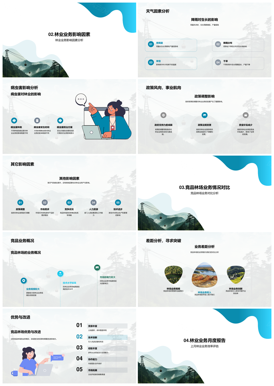 林业业务月度策略分析竞品效率天气规划PPT模板推荐