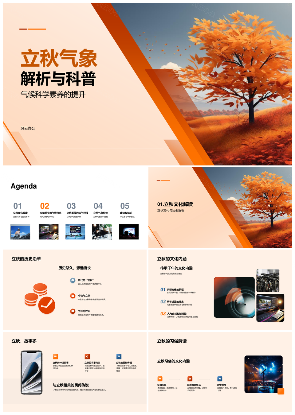 风云办公提供的立秋气象科学解析与历史文化探秘PPT模板,下载格式为pptx,一共28页,作品中文字及图均可以修改和编辑,图片更改请在作品中右键图片并更换,文字修改请直接点击文字进行修改。