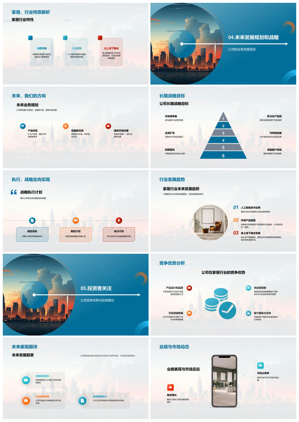 公司发展战略投资回报财务业绩家居竞争优势摩天大楼PPT模板推荐