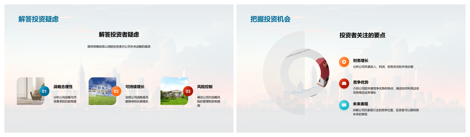 这是一张公司发展战略投资回报财务业绩家居竞争优势摩天大楼PPT模板,包含公司、发展战略、投资回报、财务业绩、家居、竞争优势、摩天大楼等主题内容,也可用作公司发展战略投资回报、发展战略投资回报财务业绩、投资回报财务业绩家居、财务业绩家居竞争优势、家居竞争优势摩天大楼、公司发展战略投资、发展战略投资回报、战略投资回报财务、投资回报财务业绩、财务业绩家居、家居竞争优势、竞争优势摩天大楼、发展战略、投资回报、财务业绩等PPT场景使用。 风云办公提供的公司发展战略投资回报财务业绩家居竞争优势摩天大楼PPT模板,下载格式为pptx,一共30页,作品中文字及图均可以修改和编辑,图片更改请在作品中右键图片并更换,文字修改请直接点击文字进行修改。