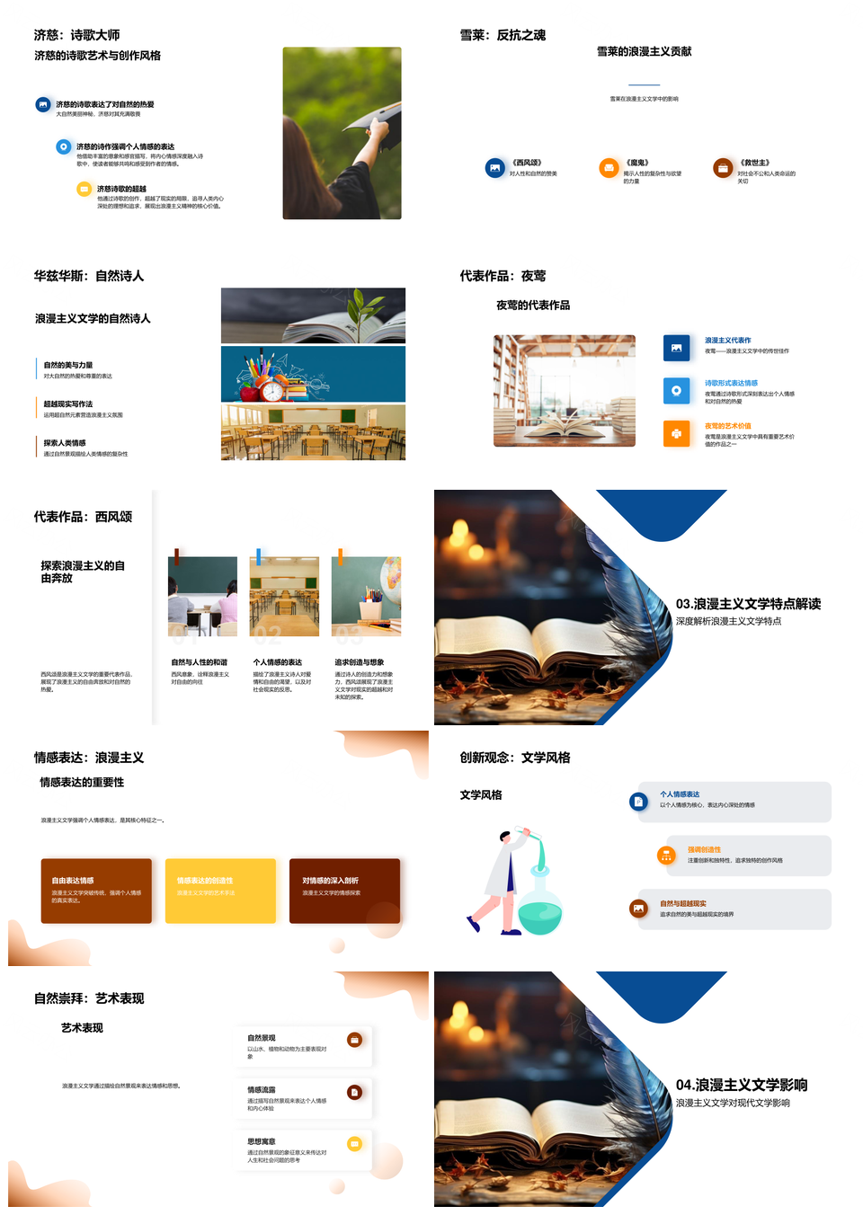 风云办公提供的浪漫主义文学起源影响与诗人夜莺探析PPT模板,下载格式为pptx,一共25页,作品中文字及图均可以修改和编辑,图片更改请在作品中右键图片并更换,文字修改请直接点击文字进行修改。