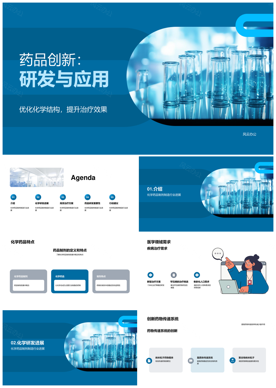 风云办公提供的化学药品制剂研发与生物医疗应用PPT模板,下载格式为pptx,一共20页,作品中文字及图均可以修改和编辑,图片更改请在作品中右键图片并更换,文字修改请直接点击文字进行修改。