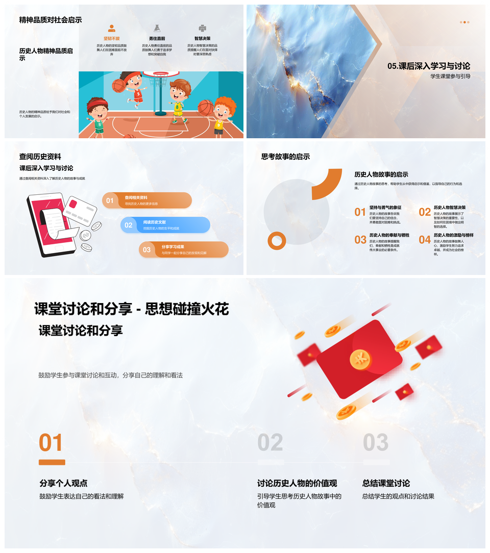 历史人物成就故事引导初中生价值观教育PPT模板推荐