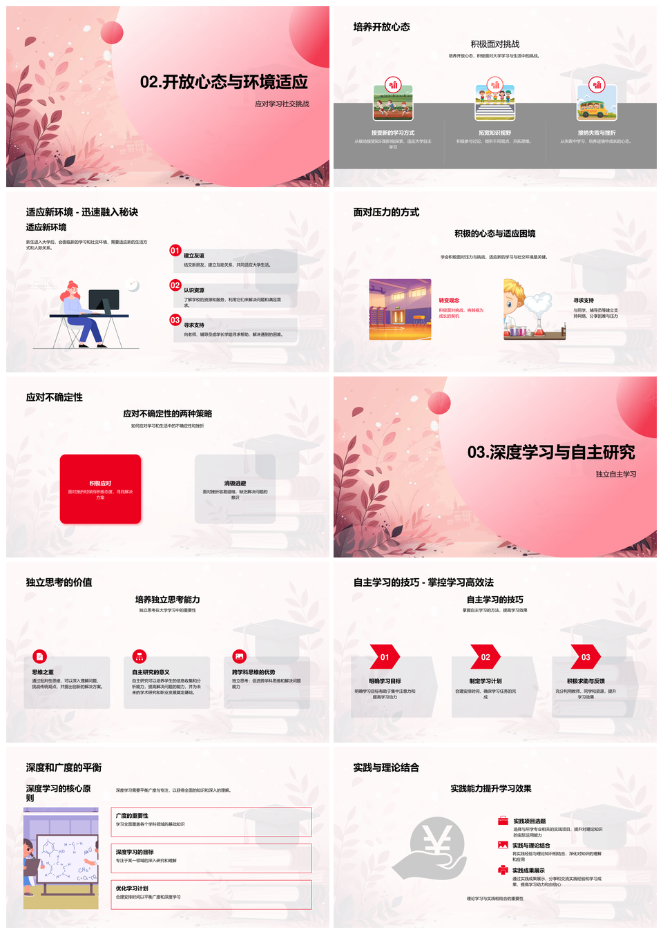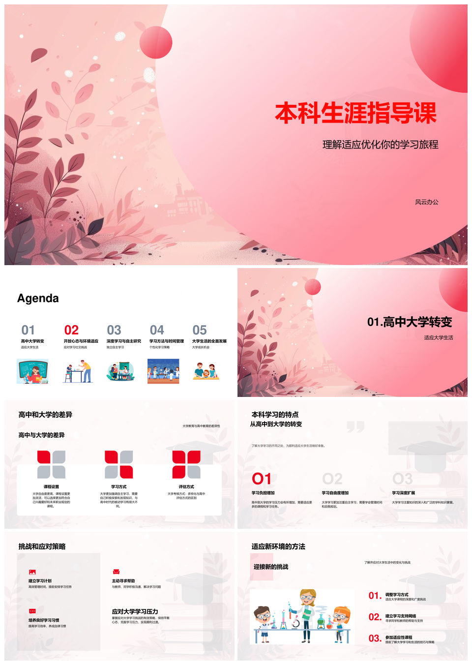 风云办公提供的本科生涯指导学习转型适应与自主探索PPT模板,下载格式为pptx,一共28页,作品中文字及图均可以修改和编辑,图片更改请在作品中右键图片并更换,文字修改请直接点击文字进行修改。