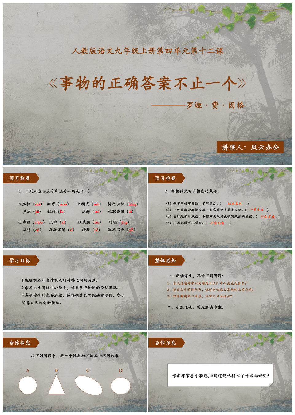 这是一张《事物的正确答案不止一个》PPT模板,包含事物的、正确答案、不止、一个等主题内容,也可用作事物、正确、答案、不止、一个 正确答案不止一个、正确答案不止、答案不止一个、正确答案、答案不止、不止一个、事物正确等PPT场景使用。 风云办公提供的《事物的正确答案不止一个》PPT模板,下载格式为pptx,一共20页,作品中文字及图均可以修改和编辑,图片更改请在作品中右键图片并更换,文字修改请直接点击文字进行修改。