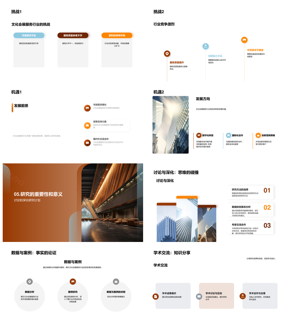 文化会展服务与本科工学答辩会议研讨PPT模板