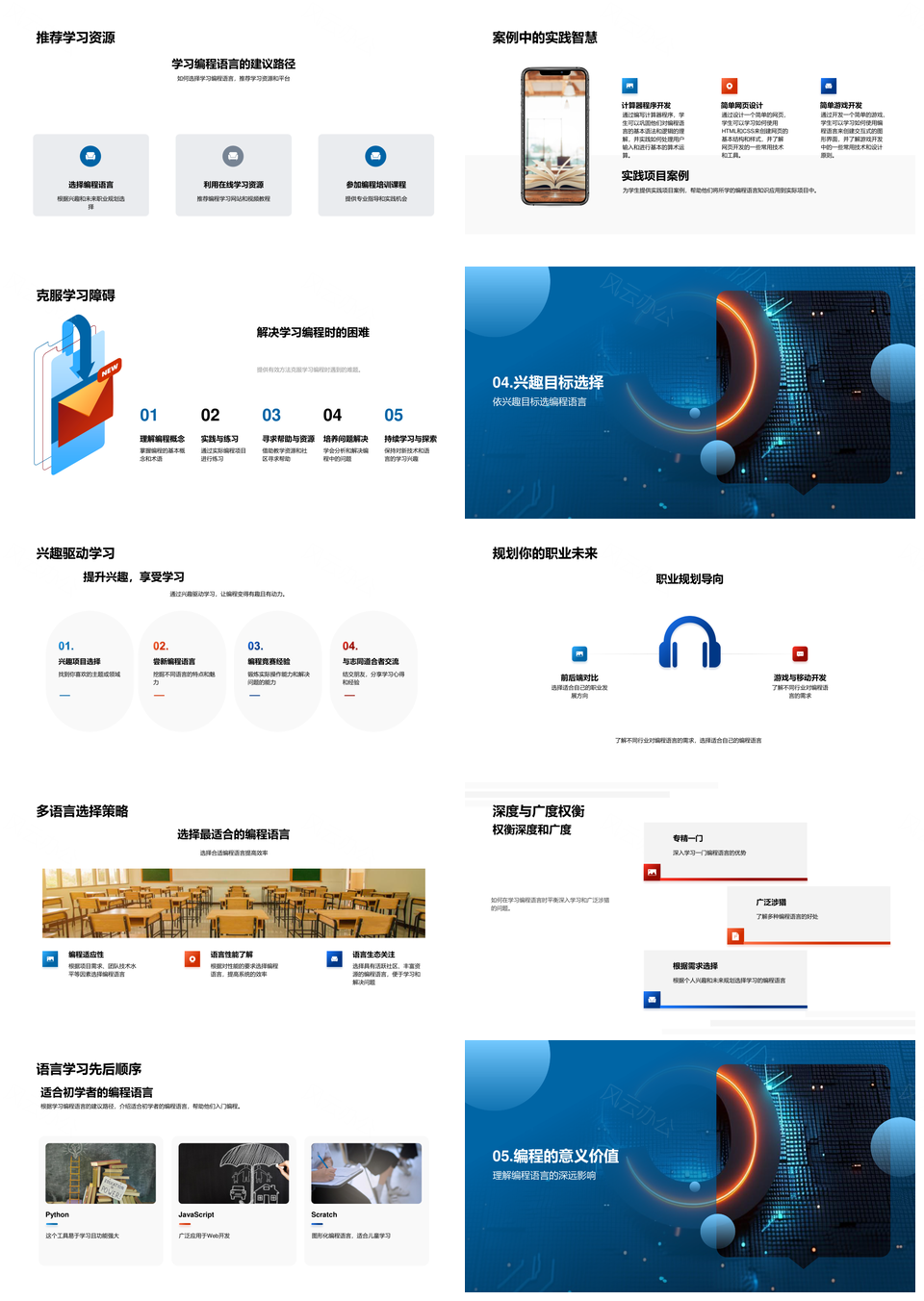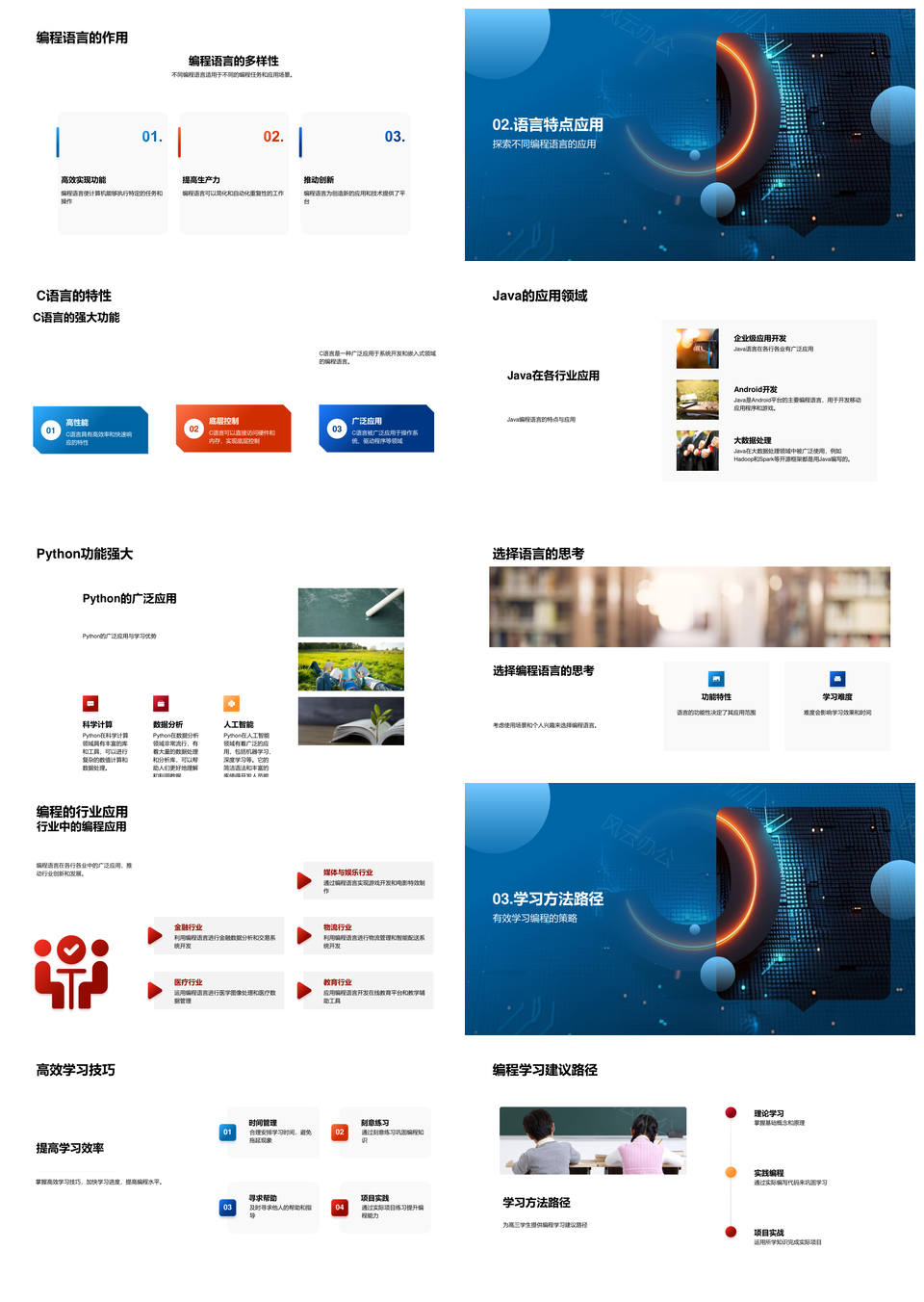 编程语言学习路径CJavaPython未来应用活力PPT模板推荐