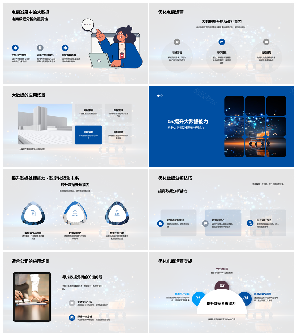 这是一张大数据驱动电商分析用户需求优化服务趋势画像PPT模板,包含大数据、驱动、电商、分析、用户需求、优化、服务、趋势、画像等主题内容,也可用作大数据驱动电商分析、驱动电商分析用户需求、电商分析用户需求优化、分析用户需求优化服务、用户需求优化服务趋势、优化服务趋势画像、大数据驱动电商、驱动电商分析、电商分析用户需求、分析用户需求优化、用户需求优化服务、优化服务趋势、服务趋势画像、大数据驱动、驱动电商等PPT场景使用。 风云办公提供的大数据驱动电商分析用户需求优化服务趋势画像PPT模板,下载格式为pptx,一共26页,作品中文字及图均可以修改和编辑,图片更改请在作品中右键图片并更换,文字修改请直接点击文字进行修改。