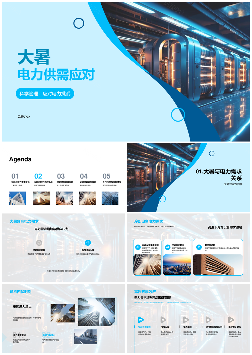 大暑电力供需预测与科学管理维护电网设备PPT模板推荐