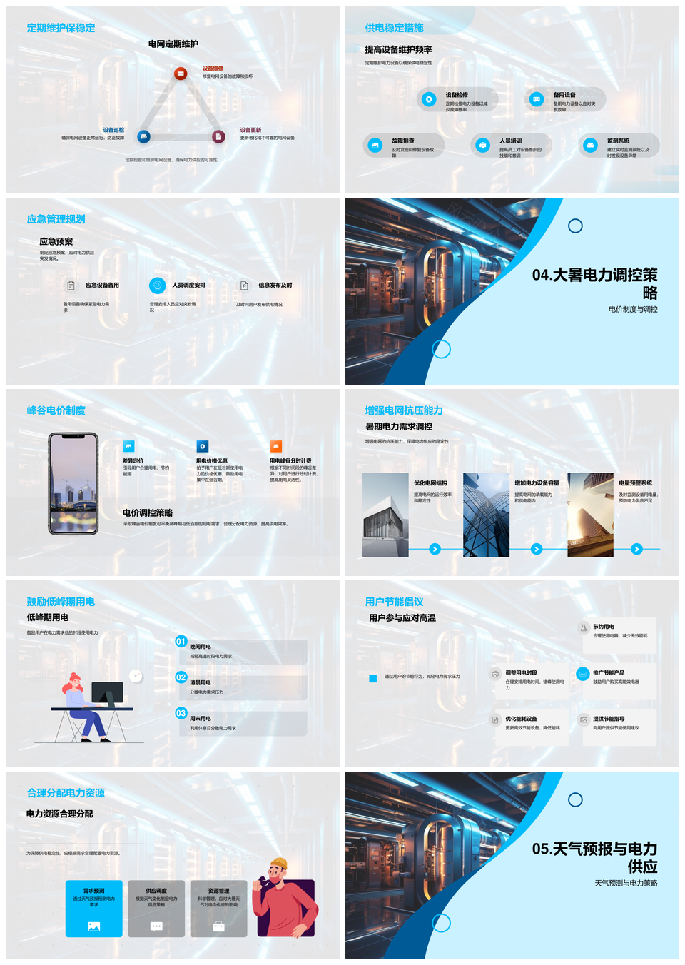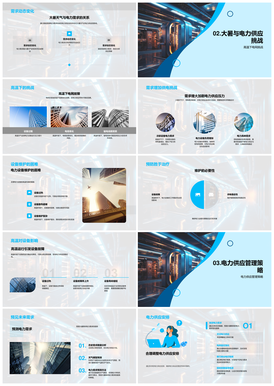 这是一张大暑电力供需预测与科学管理维护电网设备PPT模板,包含大暑、电力供需、预测、科学、管理、维护、电网设备等主题内容,也可用作大暑电力供需预测、供需预测科学管理、科学管理维护电网、管理维护电网设备、电力供需预测、科学管理维护、管理维护电网、维护电网设备、大暑电力、电力供需、供需预测、科学管理、管理维护、维护电网、电网设备等PPT场景使用。 风云办公提供的大暑电力供需预测与科学管理维护电网设备PPT模板,下载格式为pptx,一共33页,作品中文字及图均可以修改和编辑,图片更改请在作品中右键图片并更换,文字修改请直接点击文字进行修改。