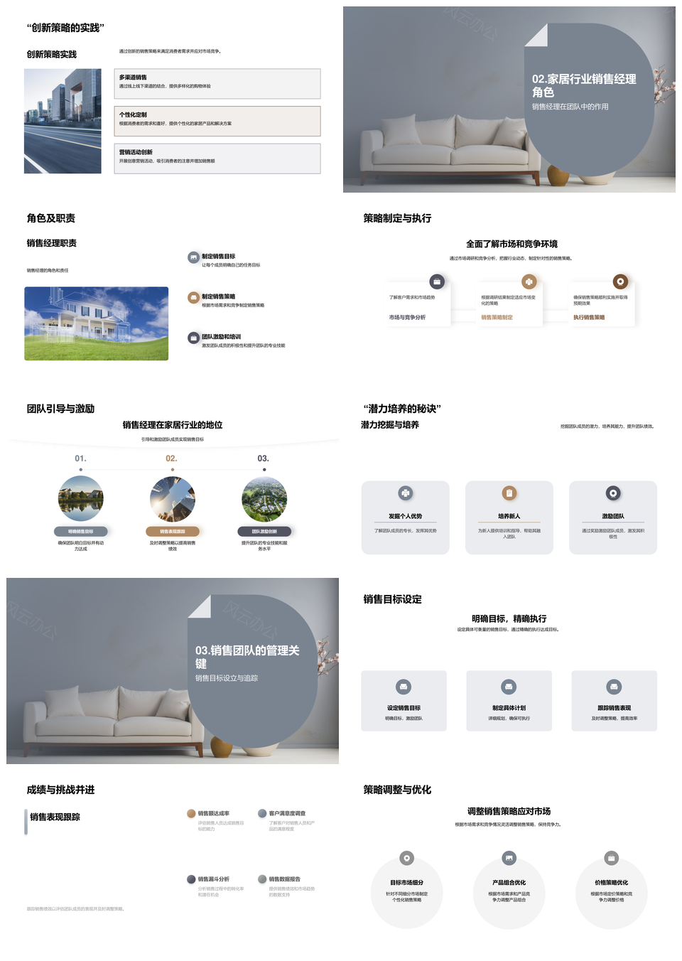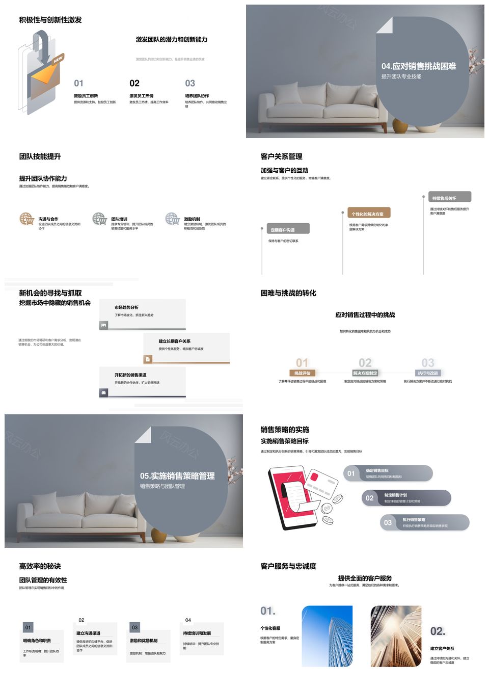 这是一张家居销售策略优化竞争需求团队管理目标服务评估PPT模板,包含家居、销售策略、优化、竞争、需求、团队、管理、目标、服务、评估等主题内容,也可用作家居销售策略优化、团队管理目标服务、管理目标服务评估、家居销售策略、销售策略优化、团队管理目标、管理目标服务、目标服务评估、家居销售、销售策略、策略优化、竞争需求、团队管理、管理目标、服务评估等PPT场景使用。 风云办公提供的家居销售策略优化竞争需求团队管理目标服务评估PPT模板,下载格式为pptx,一共29页,作品中文字及图均可以修改和编辑,图片更改请在作品中右键图片并更换,文字修改请直接点击文字进行修改。