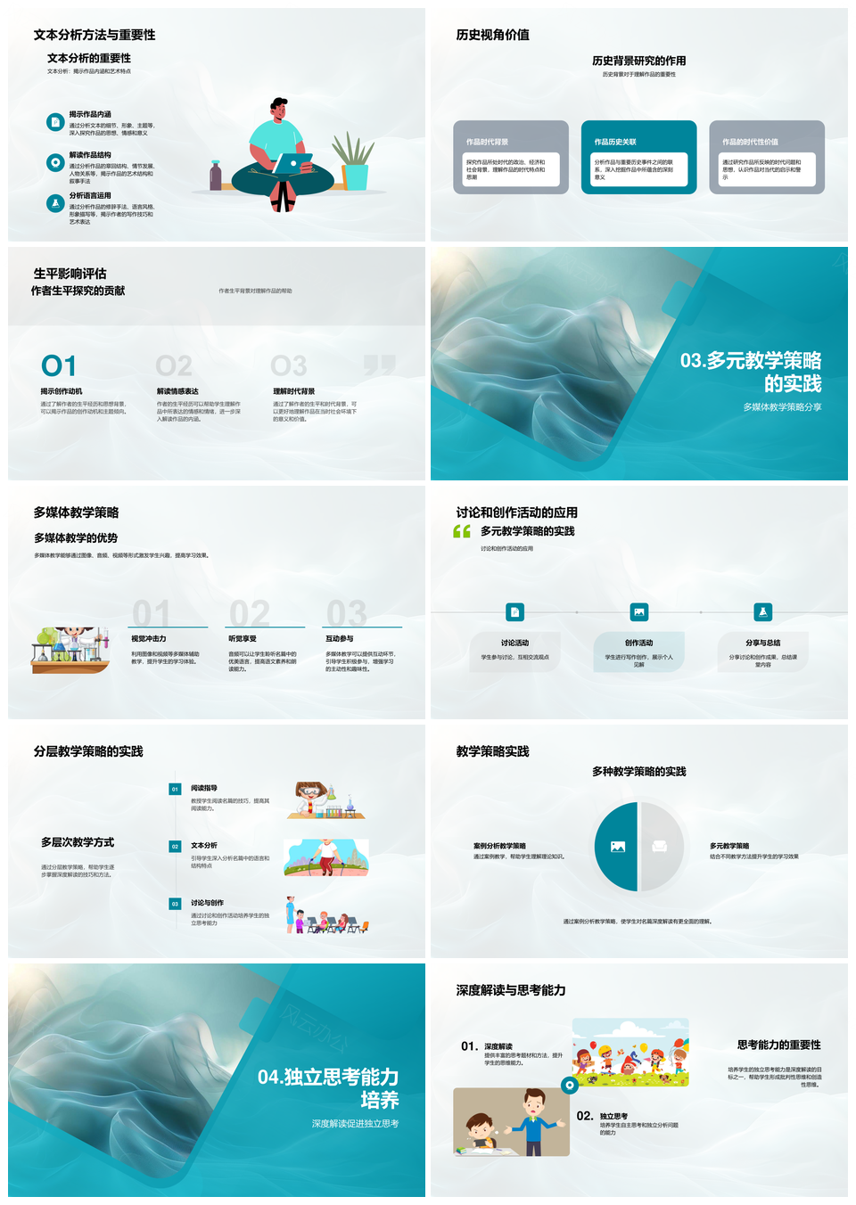 名篇深度解读文学史文本分析背景生平分层多媒体教学PPT模板推荐