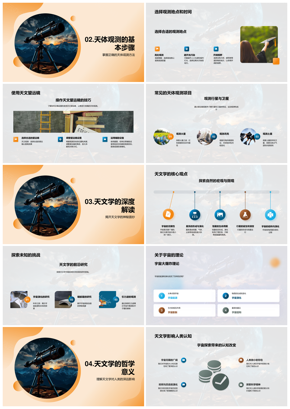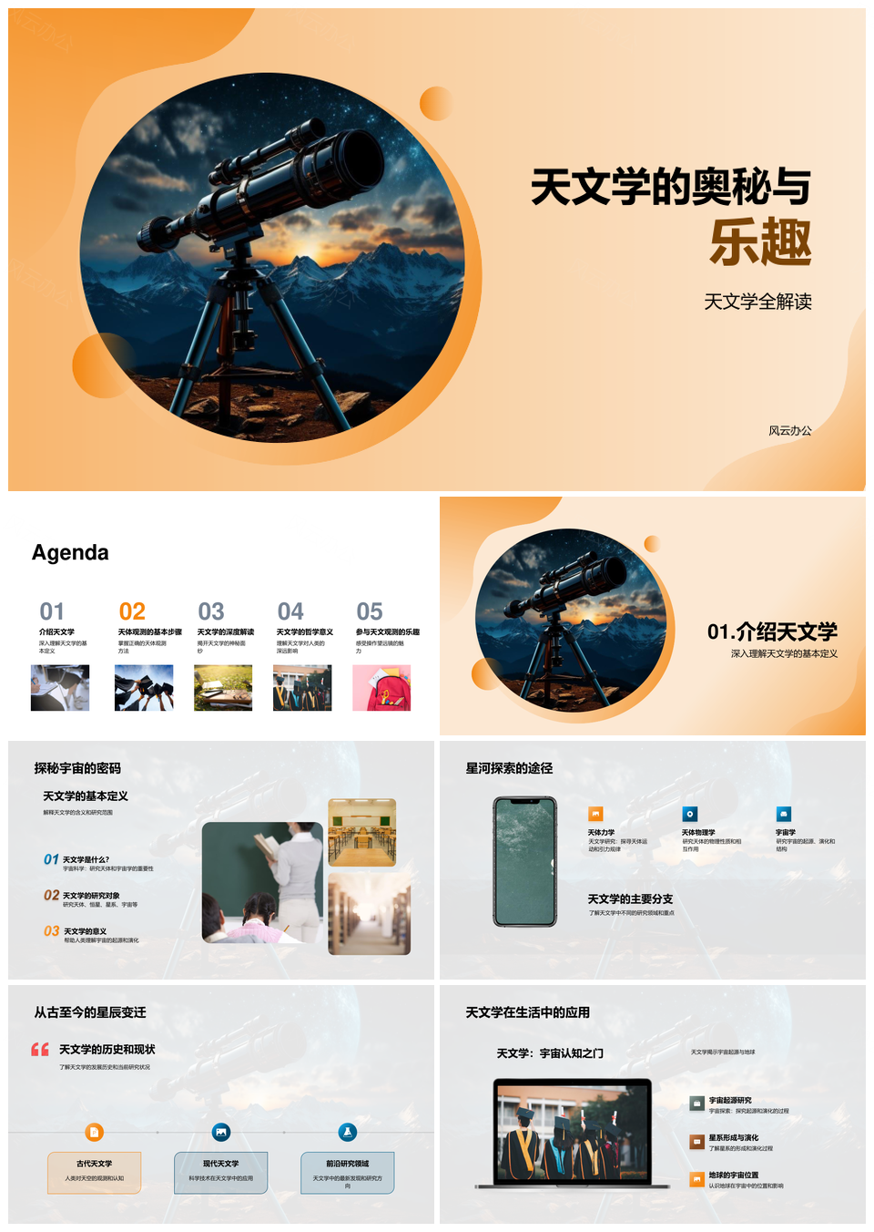 风云办公提供的天文望远镜探秘宇宙大爆炸黑洞暗物质PPT模板,下载格式为pptx,一共24页,作品中文字及图均可以修改和编辑,图片更改请在作品中右键图片并更换,文字修改请直接点击文字进行修改。