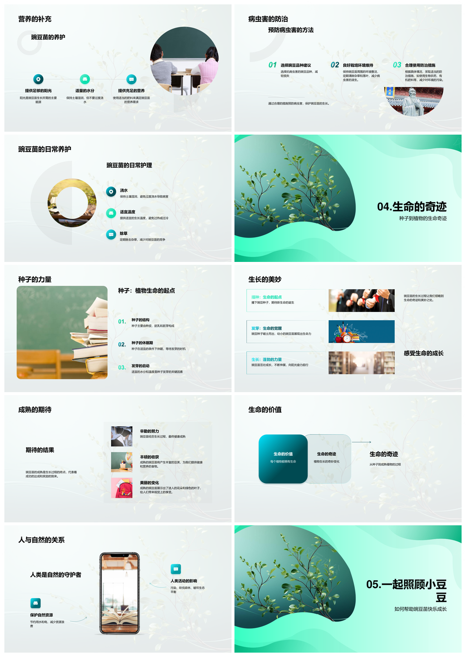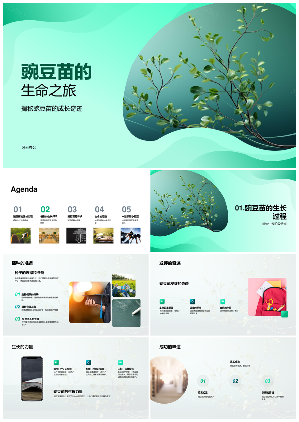 这是一张豌豆苗播种发芽生长结果全过程及环境光照PPT模板,包含豌豆苗、播种、发芽、生长、结果、全过程、环境、光照等主题内容,也可用作豌豆苗播种发芽生长、播种发芽生长结果、发芽生长结果全过程、豌豆苗环境光照、播种发芽生长、发芽生长结果、生长结果全过程、结果全过程环境、全过程环境光照、豌豆苗播种发芽、豌豆苗播种、播种发芽、发芽生长、生长结果、环境光照等PPT场景使用。 风云办公提供的豌豆苗播种发芽生长结果全过程及环境光照PPT模板,下载格式为pptx,一共33页,作品中文字及图均可以修改和编辑,图片更改请在作品中右键图片并更换,文字修改请直接点击文字进行修改。