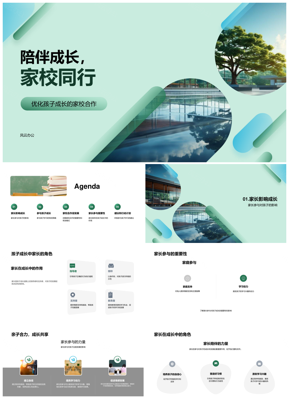风云办公提供的家校共育伴孩子健康成长PPT模板,下载格式为pptx,一共33页,作品中文字及图均可以修改和编辑,图片更改请在作品中右键图片并更换,文字修改请直接点击文字进行修改。