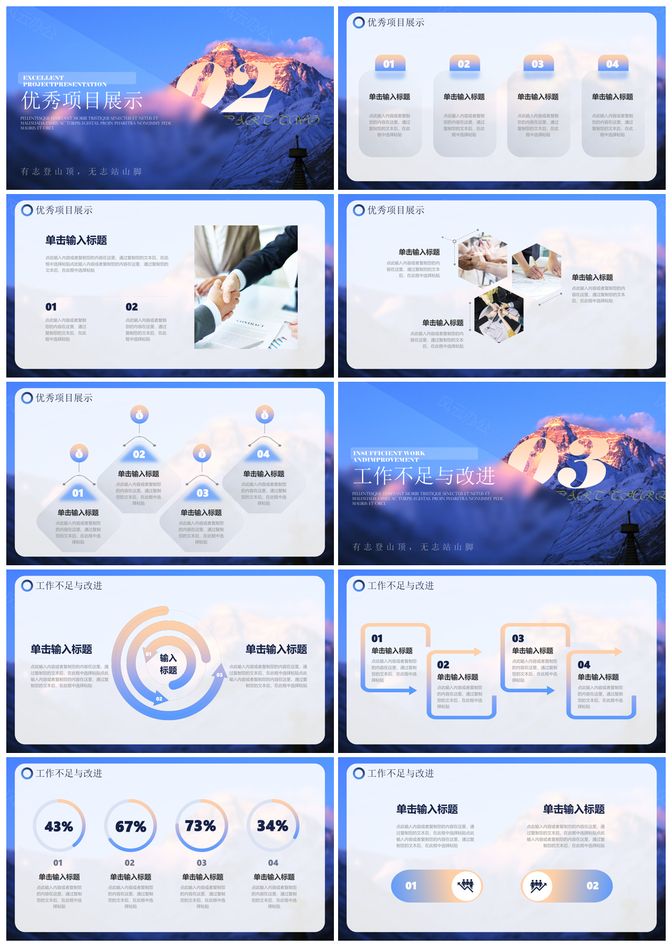 蓝色毛玻璃山川励志努力工作总结汇报PPT模板