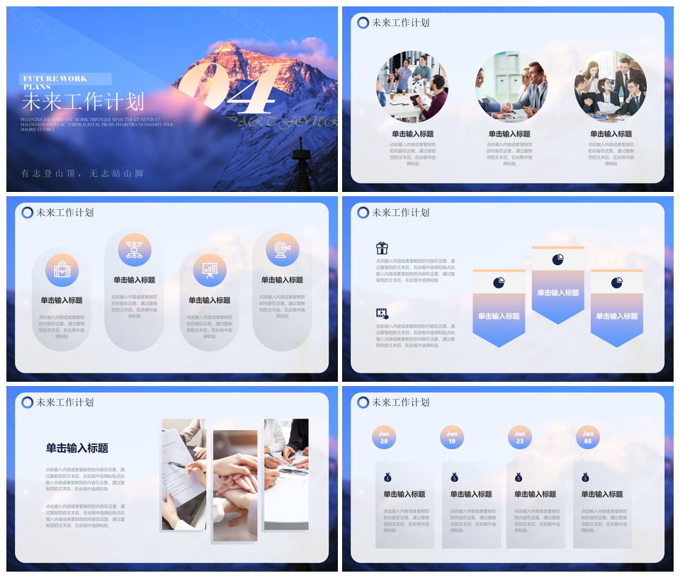 蓝色商务风工作汇报励志大气工作汇报计划总结PPT模板