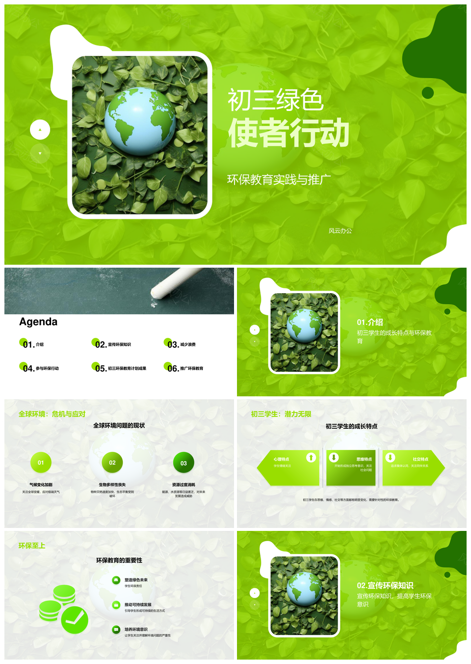 风云办公提供的初三环保践行共建绿色地球PPT模板,下载格式为pptx,一共28页,作品中文字及图均可以修改和编辑,图片更改请在作品中右键图片并更换,文字修改请直接点击文字进行修改。