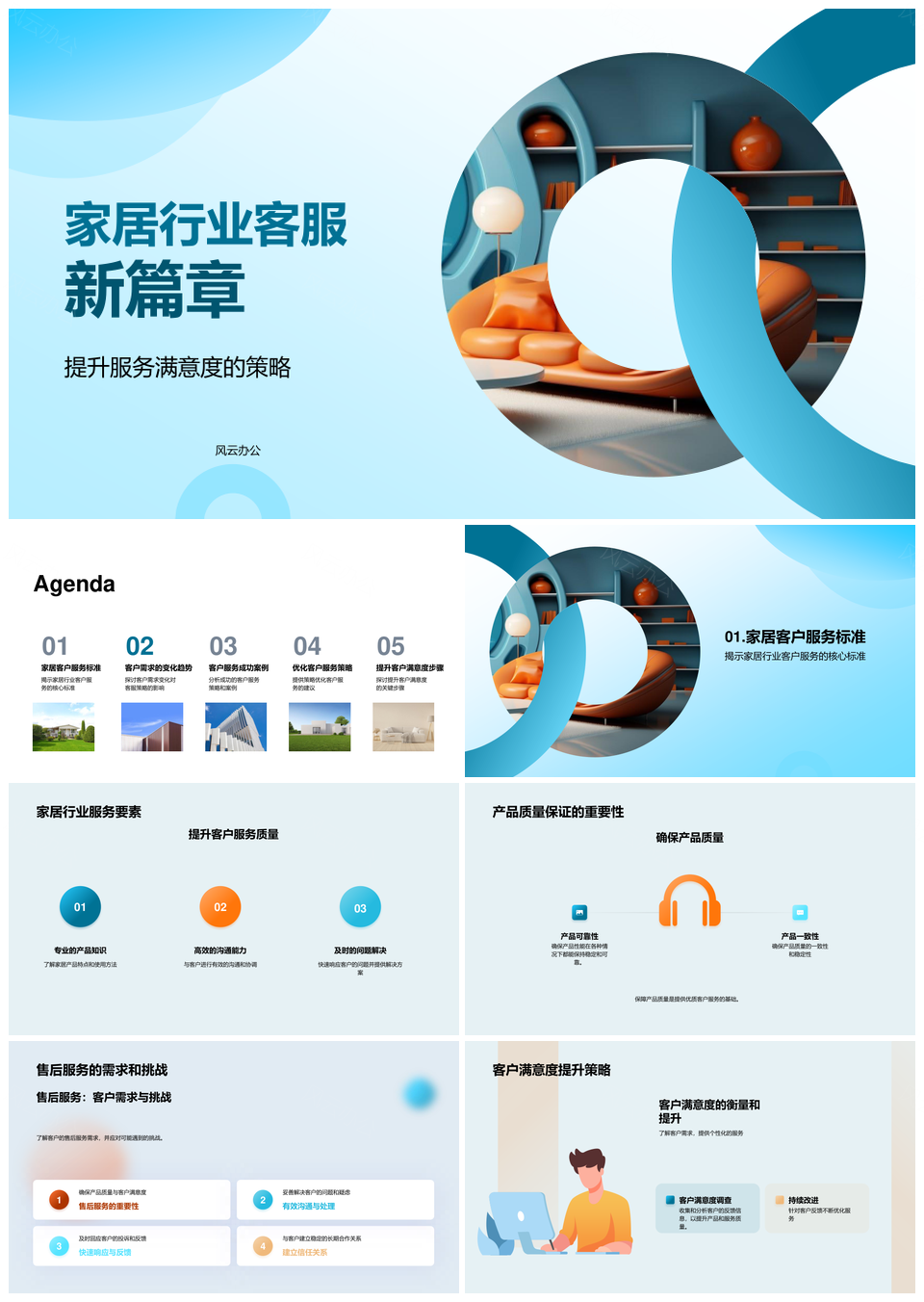 这是一张家居行业客户服务质保售后优化提升客厅家具满意度PPT模板,包含家居行业、客户服务、质保、售后、优化、提升、客厅家具、满意度等主题内容,也可用作家居行业客户服务质保售后、客户服务质保售后优化、质保售后优化提升、优化提升客厅家具满意度、家居行业质保售后优化、客户服务质保售后、质保售后优化、售后优化提升、优化提升客厅家具、提升客厅家具满意度、家居行业客户服务、客户服务优化提升、客厅家具满意度优化、客户服务质保、质保售后等PPT场景使用。 风云办公提供的家居行业客户服务质保售后优化提升客厅家具满意度PPT模板,下载格式为pptx,一共24页,作品中文字及图均可以修改和编辑,图片更改请在作品中右键图片并更换,文字修改请直接点击文字进行修改。