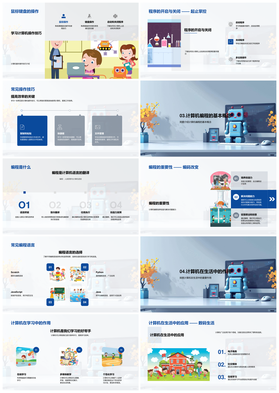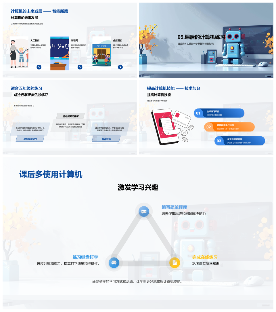 五年级计算机基础入门硬件软件操作编程PPT模板推荐