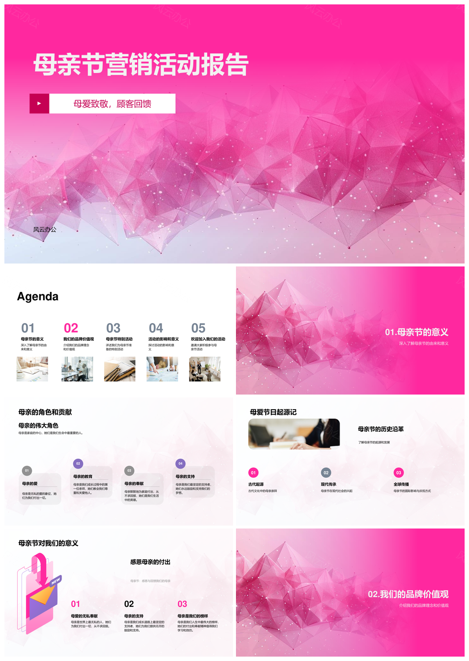 风云办公提供的母亲节品牌社区活动回馈传递母爱特色PPT模板,下载格式为pptx,一共23页,作品中文字及图均可以修改和编辑,图片更改请在作品中右键图片并更换,文字修改请直接点击文字进行修改。