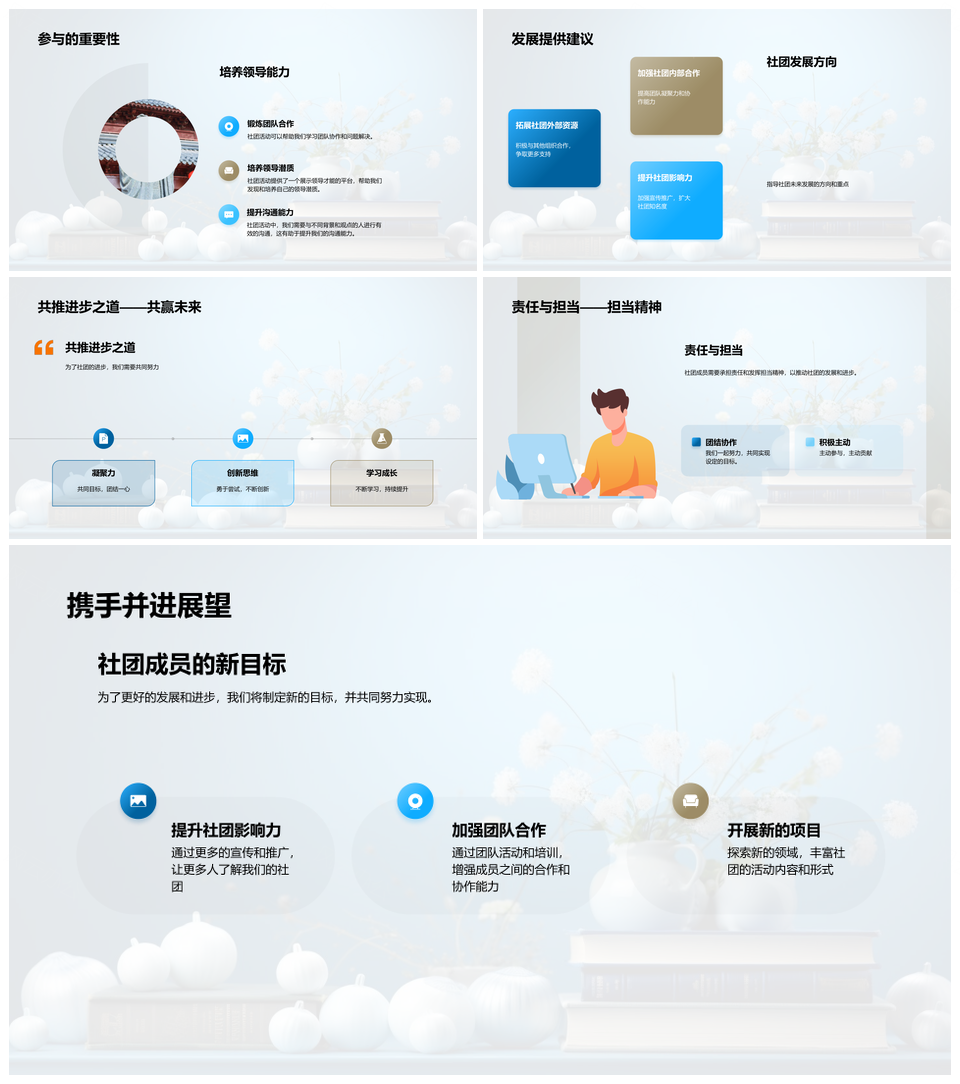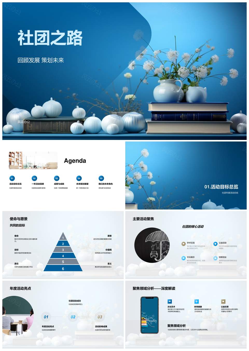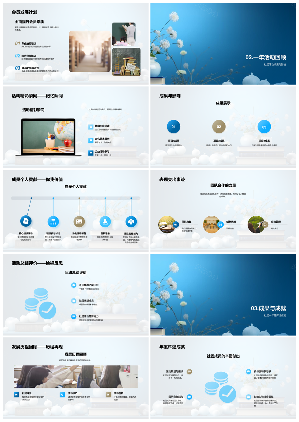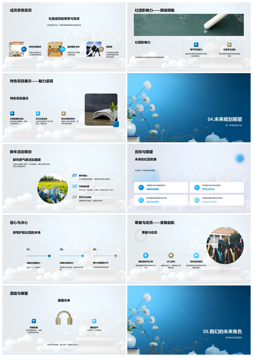 社团发展规划使命愿景活动成果成长展示PPT模板