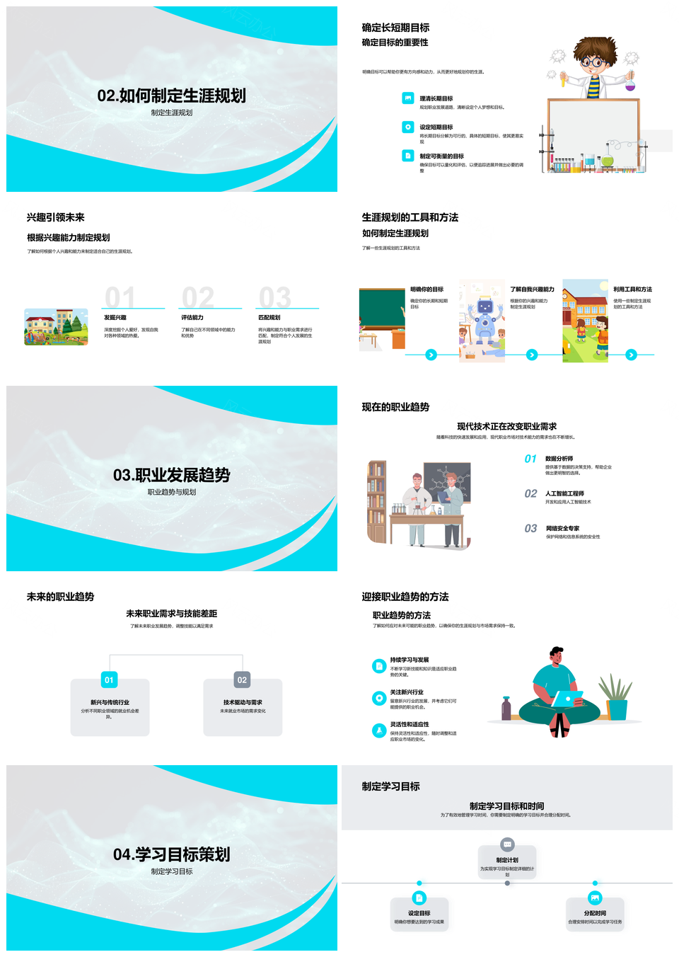 高中生涯规划工具趋势目标兴趣能力技术学习时间管理PPT模板