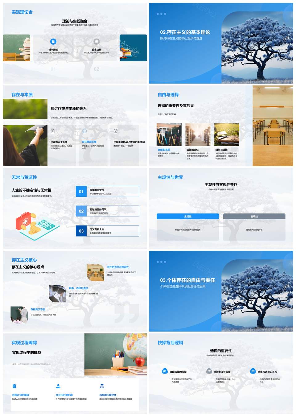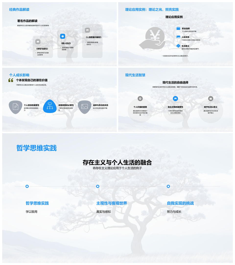 风云办公提供的师生探存在主义自由选择责任人生PPT模板,下载格式为pptx,一共33页,作品中文字及图均可以修改和编辑,图片更改请在作品中右键图片并更换,文字修改请直接点击文字进行修改。
