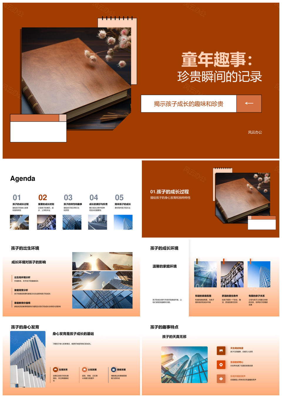 风云办公提供的童趣成长珍贵瞬间家庭影记PPT模板,下载格式为pptx,一共33页,作品中文字及图均可以修改和编辑,图片更改请在作品中右键图片并更换,文字修改请直接点击文字进行修改。