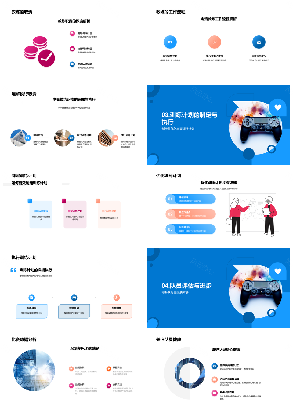 电竞教练训练数据分析队员表现职责流程规则PPT模板推荐