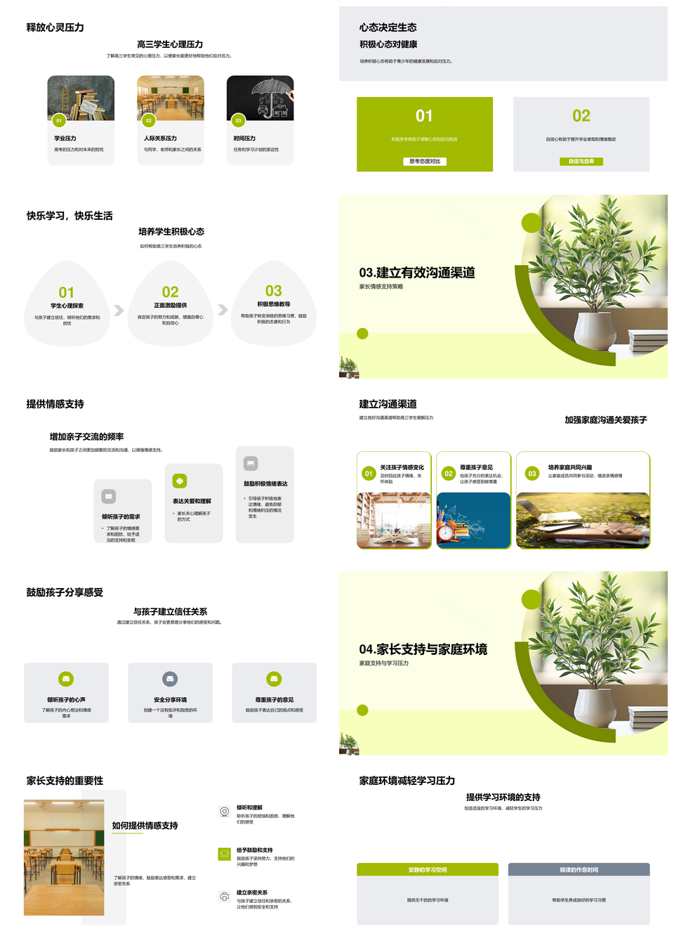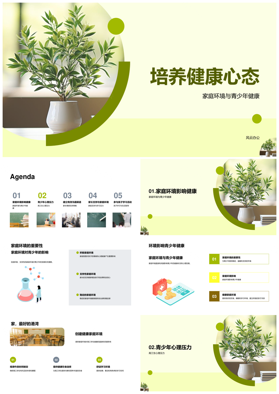 风云办公提供的高三学生家校共育减压护心积极成长PPT模板,下载格式为pptx,一共23页,作品中文字及图均可以修改和编辑,图片更改请在作品中右键图片并更换,文字修改请直接点击文字进行修改。