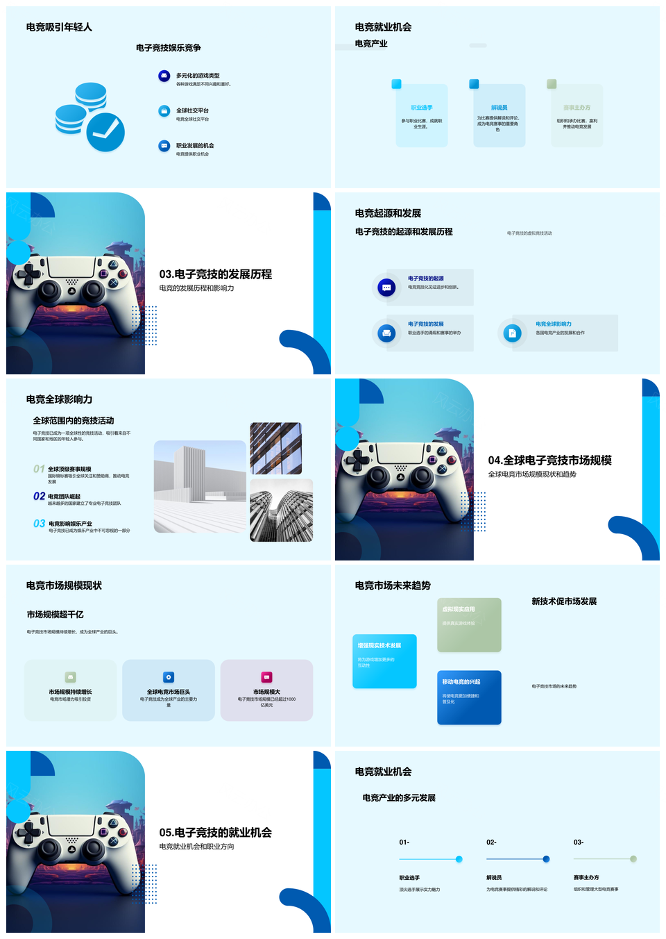 电子竞技发展全球影响力吸引年轻人就业新趋势PPT模板推荐