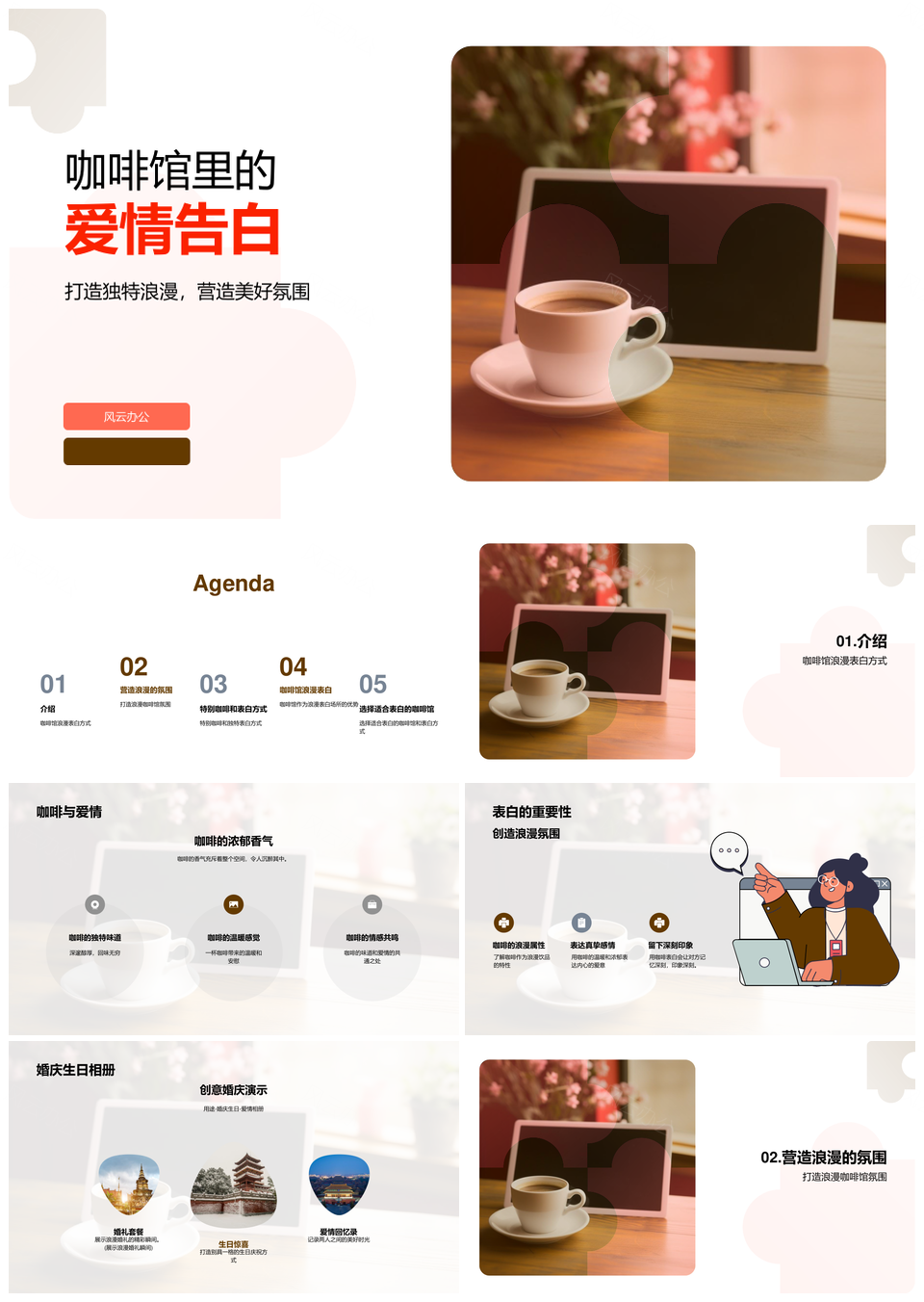 咖啡馆咖啡杯婚庆相册装饰浪漫爱情告白PPT模板