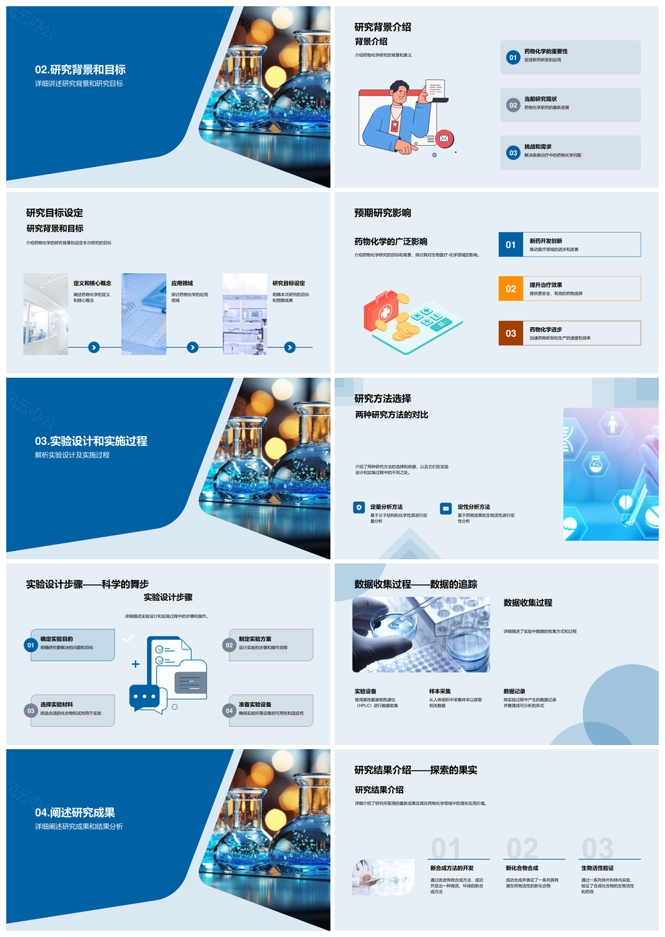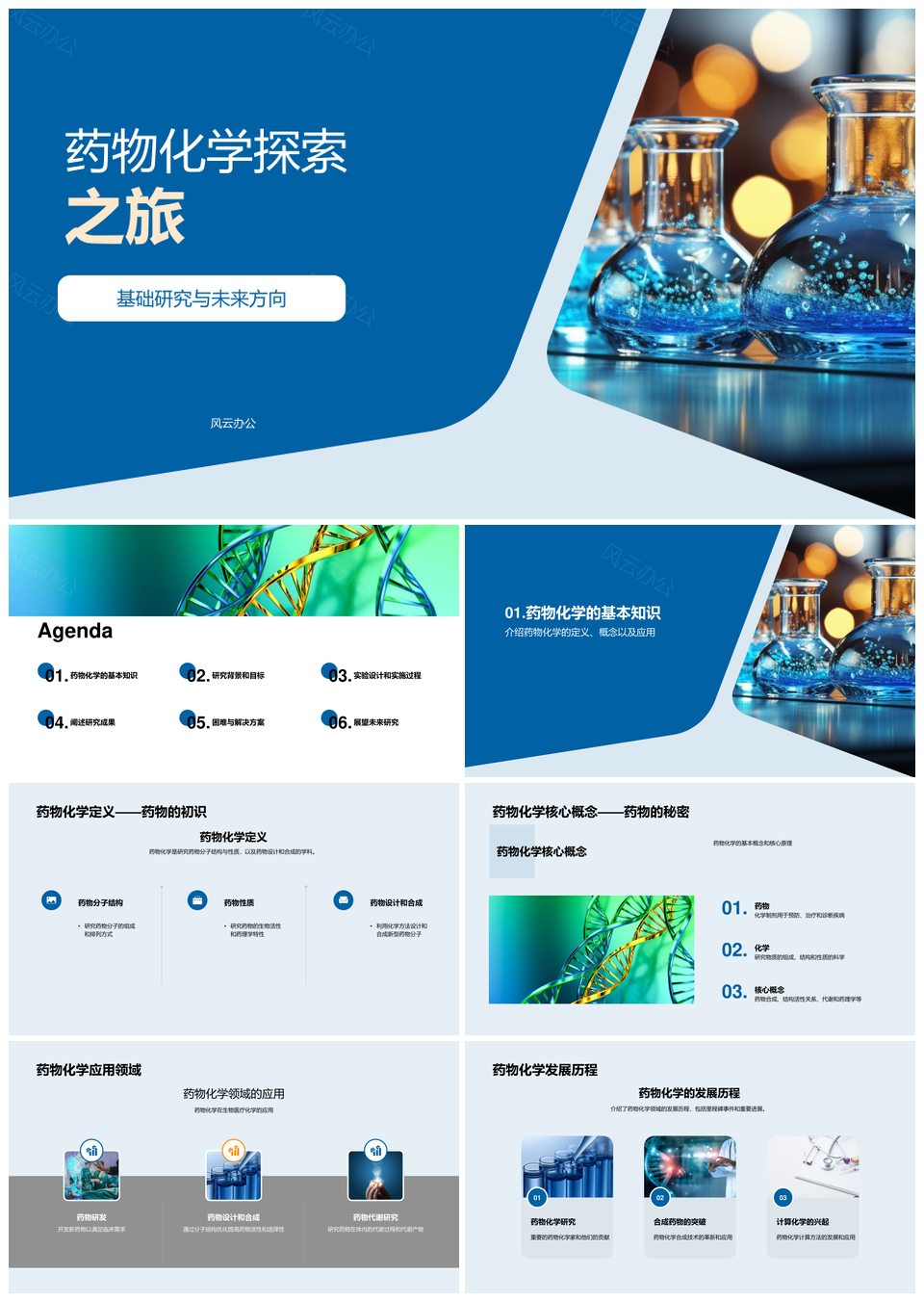 风云办公提供的药物化学研究方法实验设计与结果分析PPT模板,下载格式为pptx,一共28页,作品中文字及图均可以修改和编辑,图片更改请在作品中右键图片并更换,文字修改请直接点击文字进行修改。