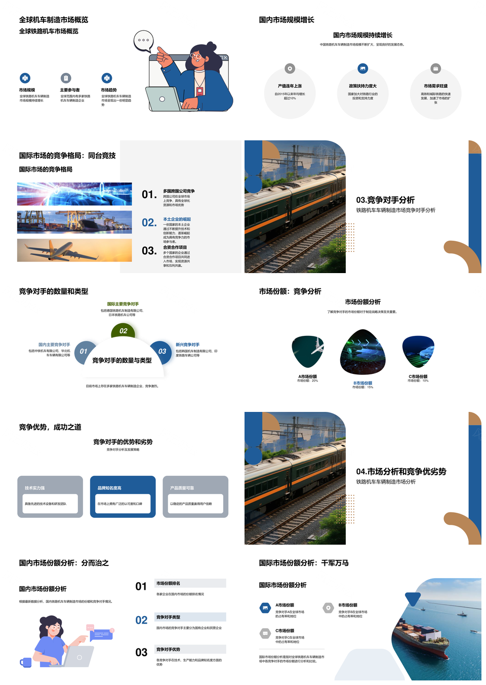 铁路机车产业历史发展国内外市场趋势分析PPT模板推荐