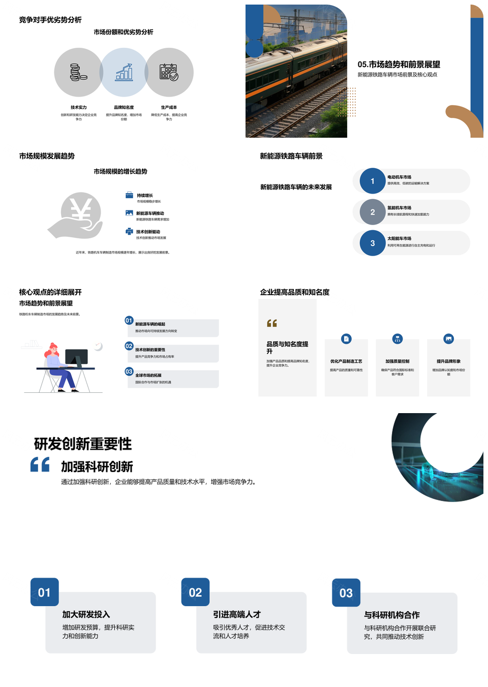 这是一张铁路机车产业历史发展国内外市场趋势分析PPT模板,包含铁路、机车、产业、历史、发展、国内、外市场、趋势、分析等主题内容,也可用作铁路机车产业历史发展国内外市场趋势分析、铁路机车产业历史发展国内外市场、铁路机车产业历史发展趋势分析、铁路机车产业国内外市场趋势分析、产业历史发展国内外市场趋势分析、铁路机车产业历史发展、产业历史发展国内外、铁路机车产业国内外、历史发展国内外市场、国内外市场趋势分析、铁路机车产业市场、产业历史发展市场、市场趋势分析、历史发展国内外、铁路机车产业等PPT场景使用。 风云办公提供的铁路机车产业历史发展国内外市场趋势分析PPT模板,下载格式为pptx,一共25页,作品中文字及图均可以修改和编辑,图片更改请在作品中右键图片并更换,文字修改请直接点击文字进行修改。