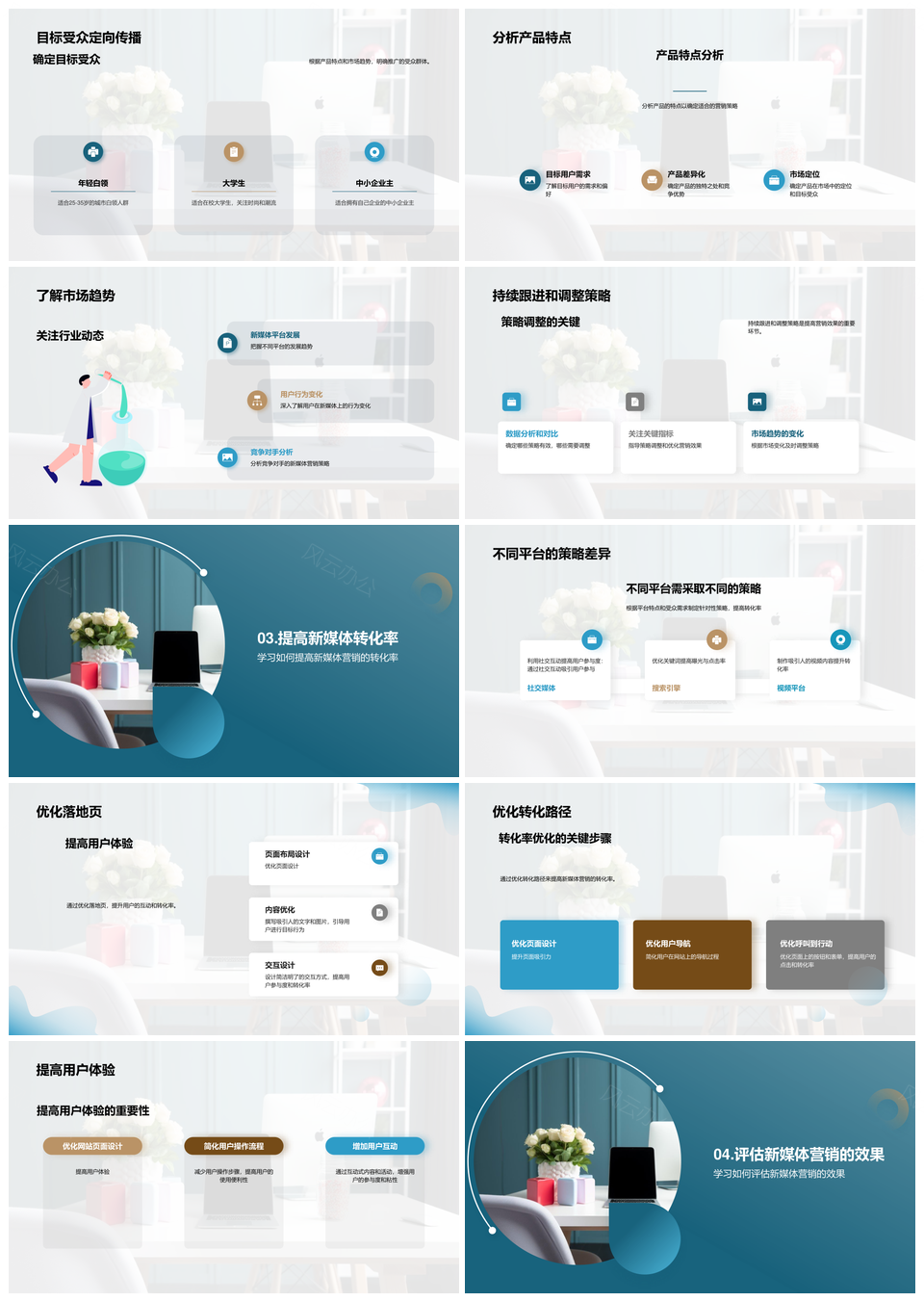 这是一张新媒体营销策略方法与智能手机案例分析PPT模板,包含新媒体、营销、策略、方法、智能手机、案例、分析等主题内容,也可用作新媒体营销策略方法与智能手机案例、新媒体营销策略方法、营销策略方法与智能手机案例、策略方法与智能手机案例分析、智能手机案例分析、新媒体营销策略方法案例、新媒体营销策略与智能手机、营销策略方法与案例分析、策略方法与智能手机案例、智能手机案例分析方法、新媒体营销策略、营销策略方法、智能手机案例、案例分析、新媒体营销方法等PPT场景使用。 风云办公提供的新媒体营销策略方法与智能手机案例分析PPT模板,下载格式为pptx,一共30页,作品中文字及图均可以修改和编辑,图片更改请在作品中右键图片并更换,文字修改请直接点击文字进行修改。