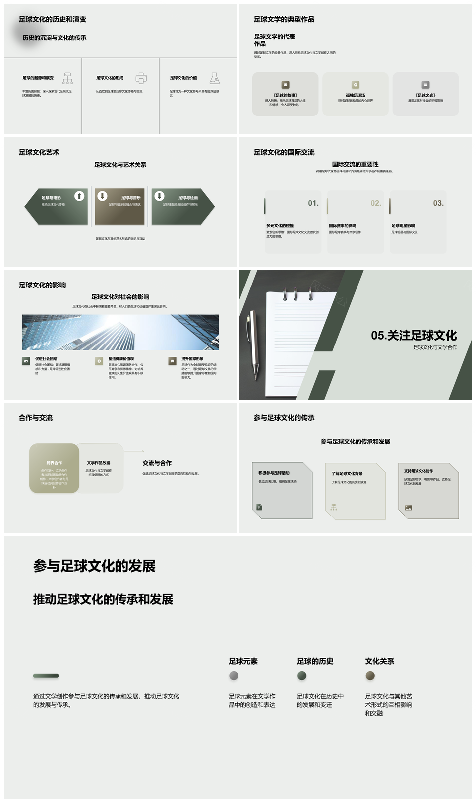 这是一张足球文化文学创作的群众社会思考与表达PPT模板,包含足球文化、文学创作、群众、社会思考、表达等主题内容,也可用作足球文化文学创作、文学创作群众社会、创作群众社会思考、群众社会思考表达、足球文化社会思考、足球群众社会思考、文化文学创作群众、文学创作社会思考、创作群众社会表达、足球文化思考表达、文化群众社会表达、文学创作思考表达、创作社会思考表达、足球社会思考表达、足球文化群众社会等PPT场景使用。 风云办公提供的足球文化文学创作的群众社会思考与表达PPT模板,下载格式为pptx,一共27页,作品中文字及图均可以修改和编辑,图片更改请在作品中右键图片并更换,文字修改请直接点击文字进行修改。