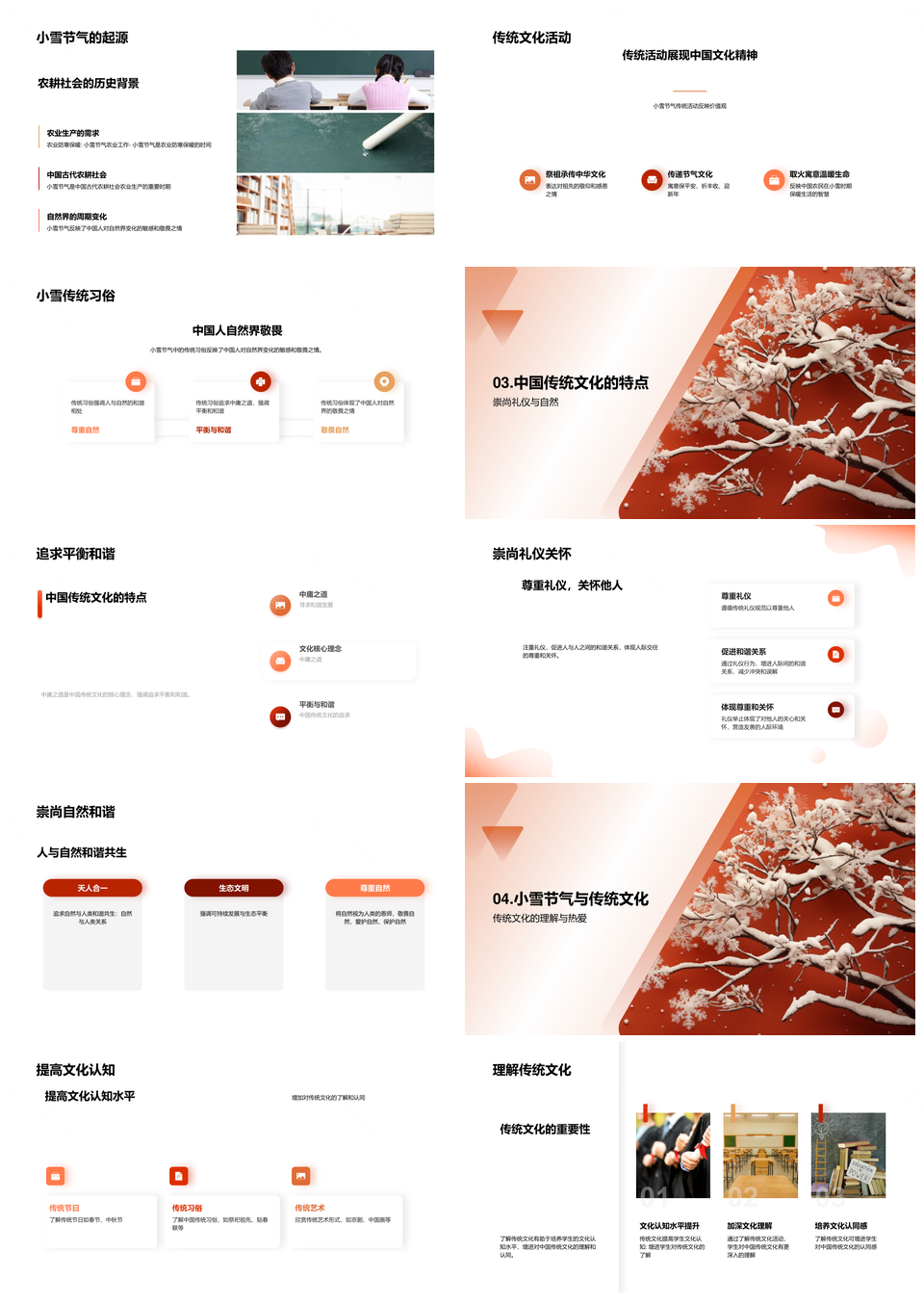 这是一张小雪传统文化教育农事防寒学科教师传节气PPT模板,包含小雪、传统文化、教育、农事、防寒、学科、教师、传节气等主题内容,也可用作小雪传统文化教育农事、传统文化教育农事防寒、教育农事防寒学科、农事防寒学科教师、防寒学科教师节气、小雪传统文化教育、传统文化教育农事、教育农事防寒、农事防寒学科、防寒学科教师、学科教师节气、小雪传统文化、传统文化教育、教育农事、农事防寒等PPT场景使用。 风云办公提供的小雪传统文化教育农事防寒学科教师传节气PPT模板,下载格式为pptx,一共23页,作品中文字及图均可以修改和编辑,图片更改请在作品中右键图片并更换,文字修改请直接点击文字进行修改。