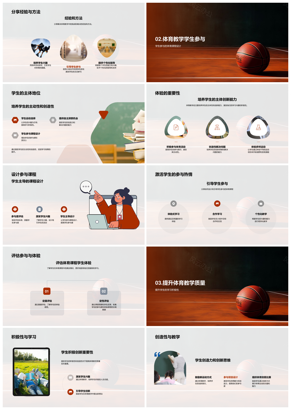 这是一张体育教学创新提质量促学生篮球参与PPT模板,包含体育教学、创新、提质量、学生、篮球、参与等主题内容,也可用作体育教学创新提质量、体育教学创新、教学创新提质量、体育教学学生篮球、学生篮球参与、体育教学、教学创新、创新提质量、提质量学生、学生篮球、篮球参与、体育创新、教学提质量、学生参与、体育篮球等PPT场景使用。