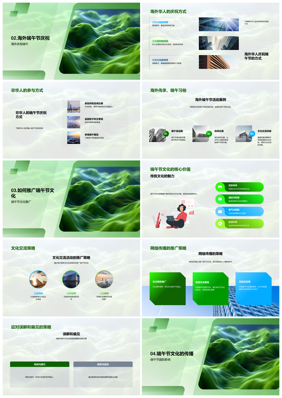 端午节国际推广教科文影响力文化交流网络策略PPT模板推荐