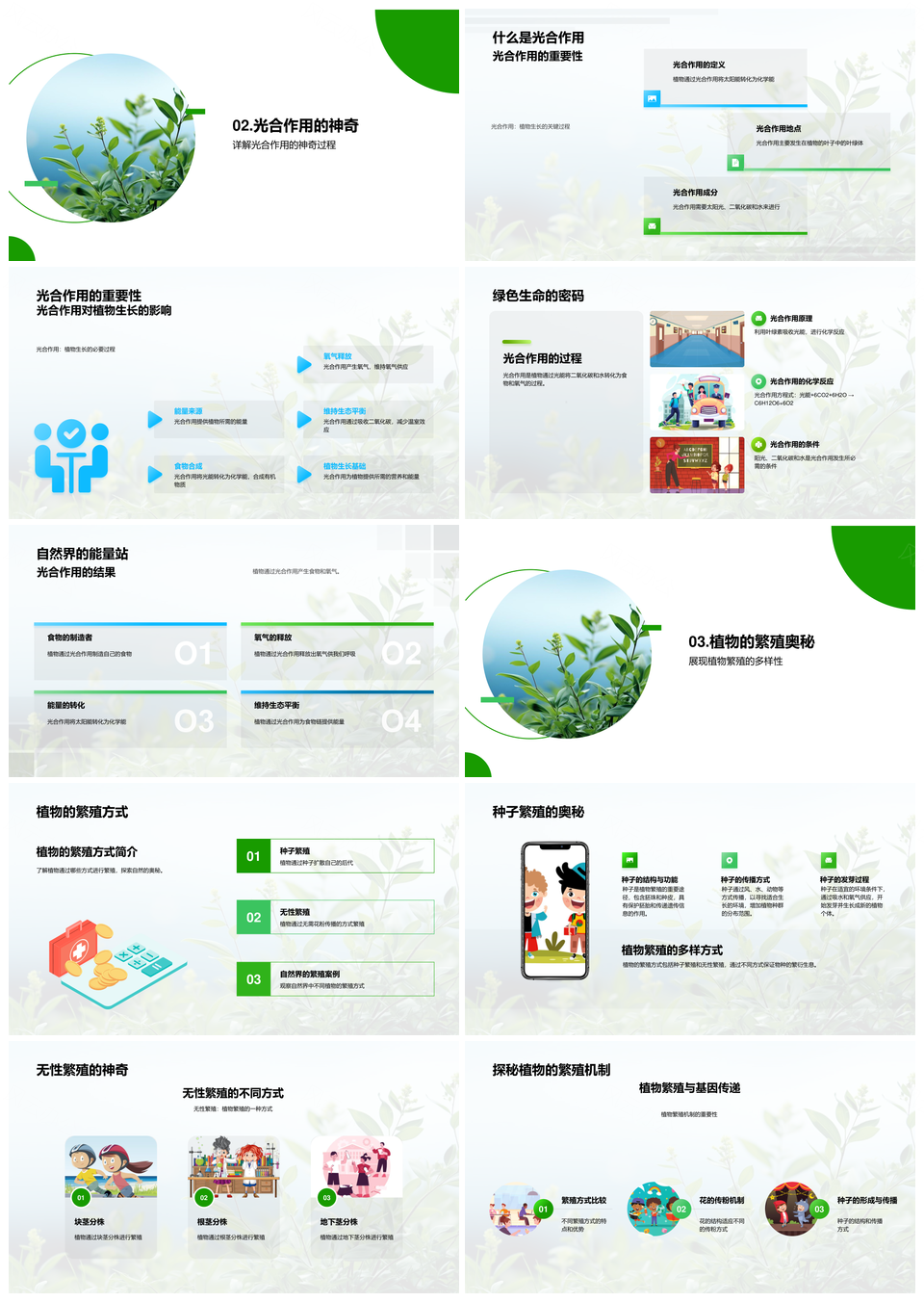 风云办公提供的绿叶光合作用与植物繁殖生长探秘PPT模板,下载格式为pptx,一共28页,作品中文字及图均可以修改和编辑,图片更改请在作品中右键图片并更换,文字修改请直接点击文字进行修改。
