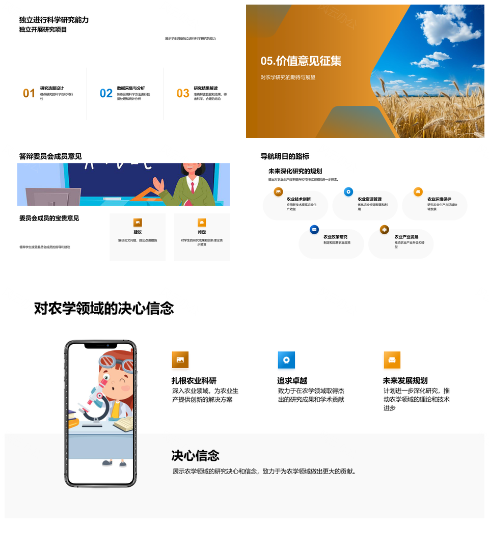 风云办公提供的农学硕士答辩策略与农业环保创新应用PPT模板,下载格式为pptx,一共23页,作品中文字及图均可以修改和编辑,图片更改请在作品中右键图片并更换,文字修改请直接点击文字进行修改。