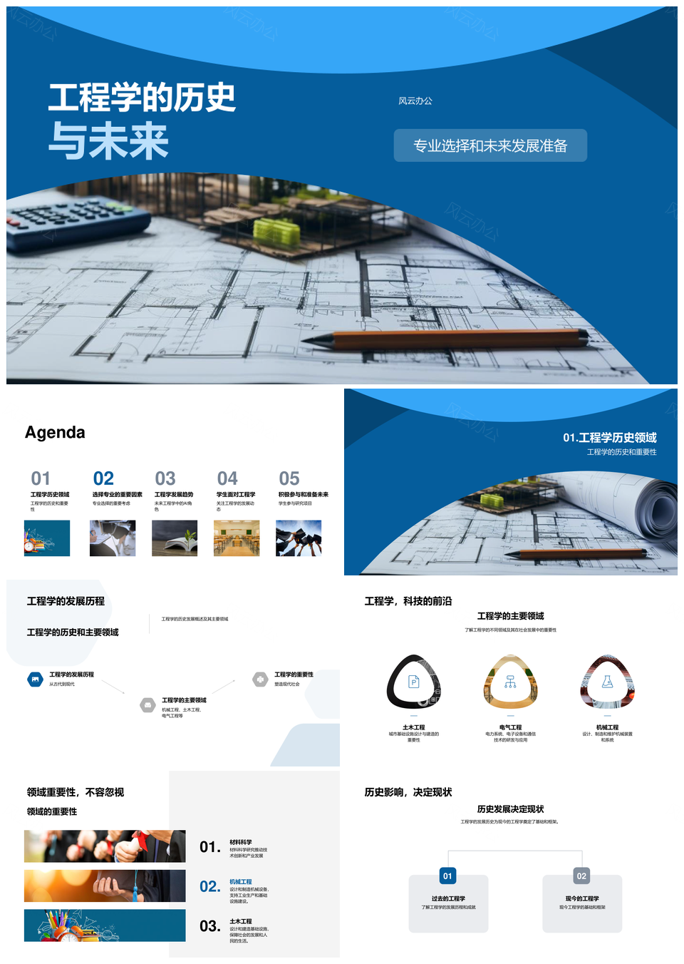工程学历史未来专业材料力学可持续AI发展蓝图PPT模板推荐