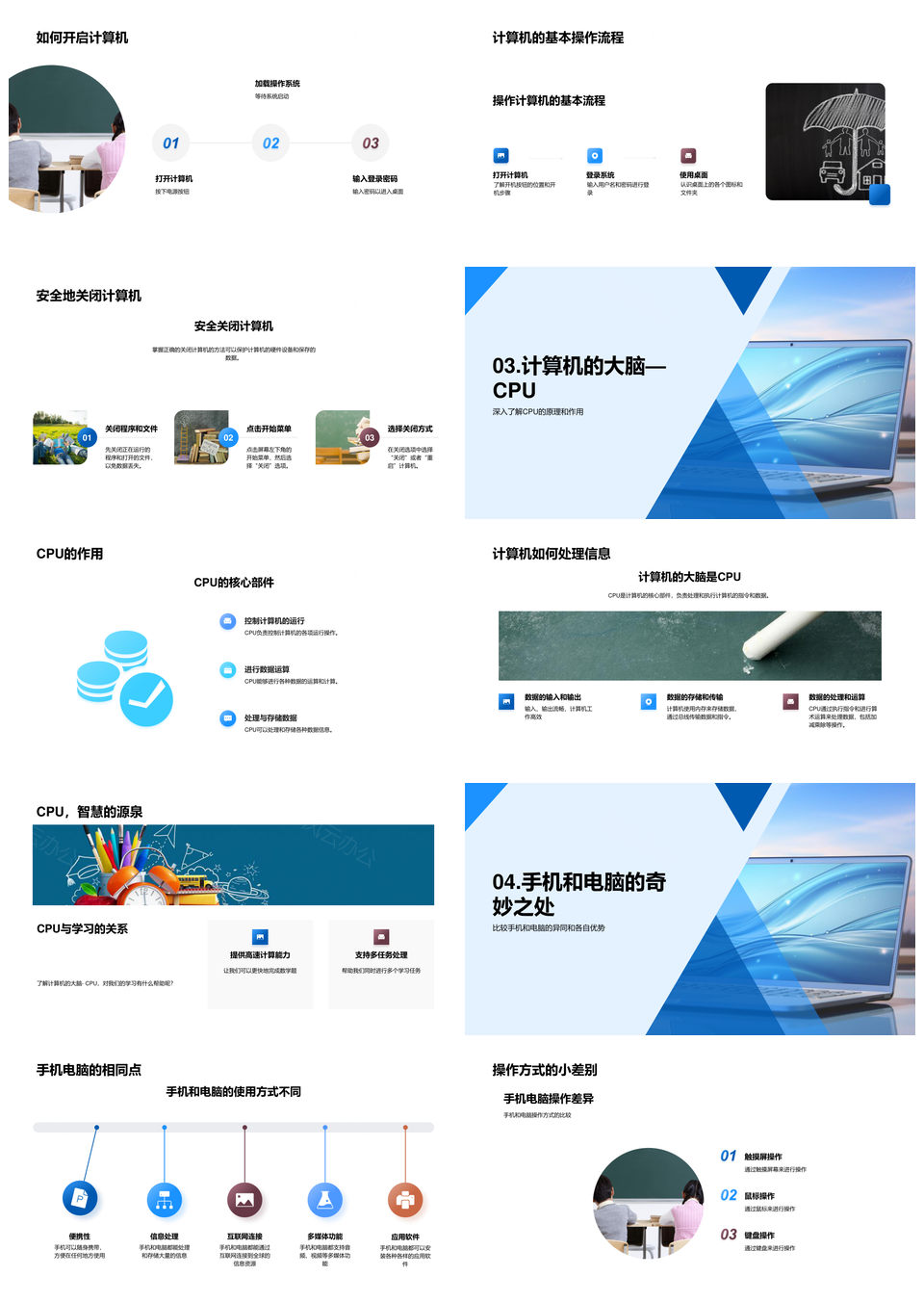 风云办公提供的探索电脑手机CPU与教育软件学习PPT模板,下载格式为pptx,一共24页,作品中文字及图均可以修改和编辑,图片更改请在作品中右键图片并更换,文字修改请直接点击文字进行修改。