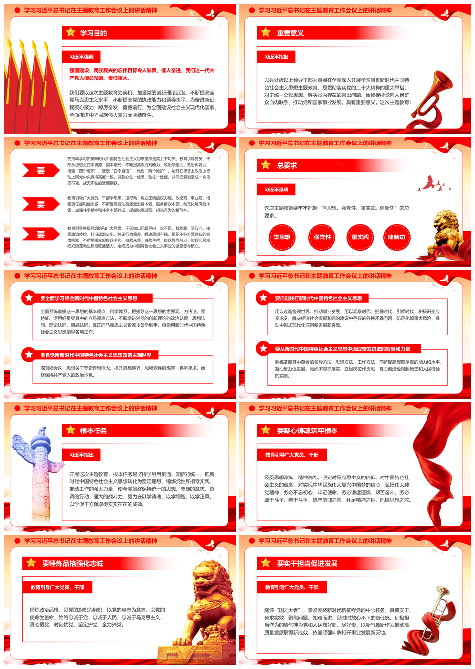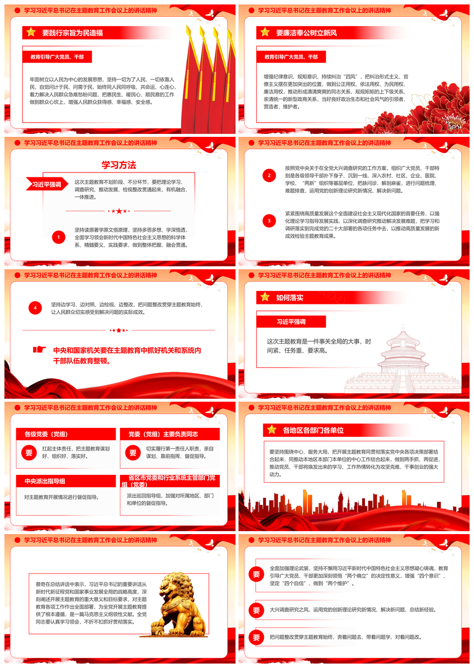第二批主题教育部署会议党建四学四下基层五注重PPT模板推荐