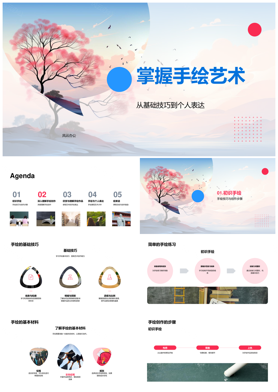 手绘艺术基础技巧与创作步骤创新思维个人表达PPT模板