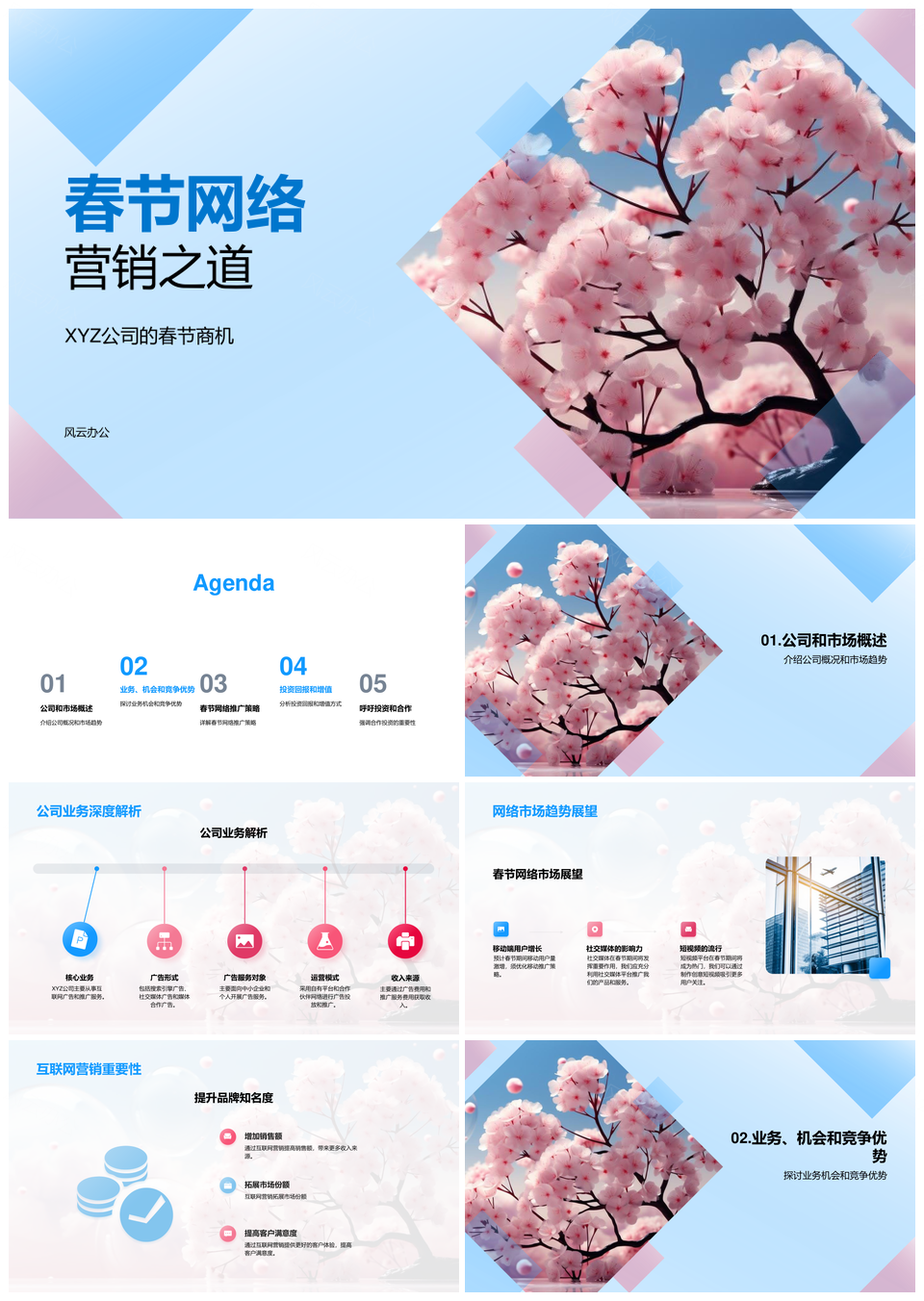 XYZ春节网络营销樱花树商机竞争优势投资回报PPT模板
