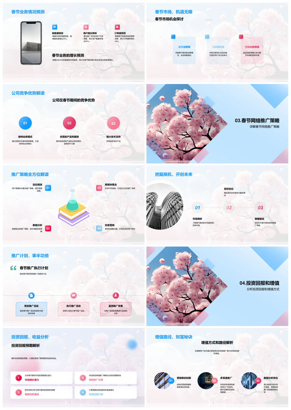 XYZ春节网络营销樱花树商机竞争优势投资回报PPT模板推荐