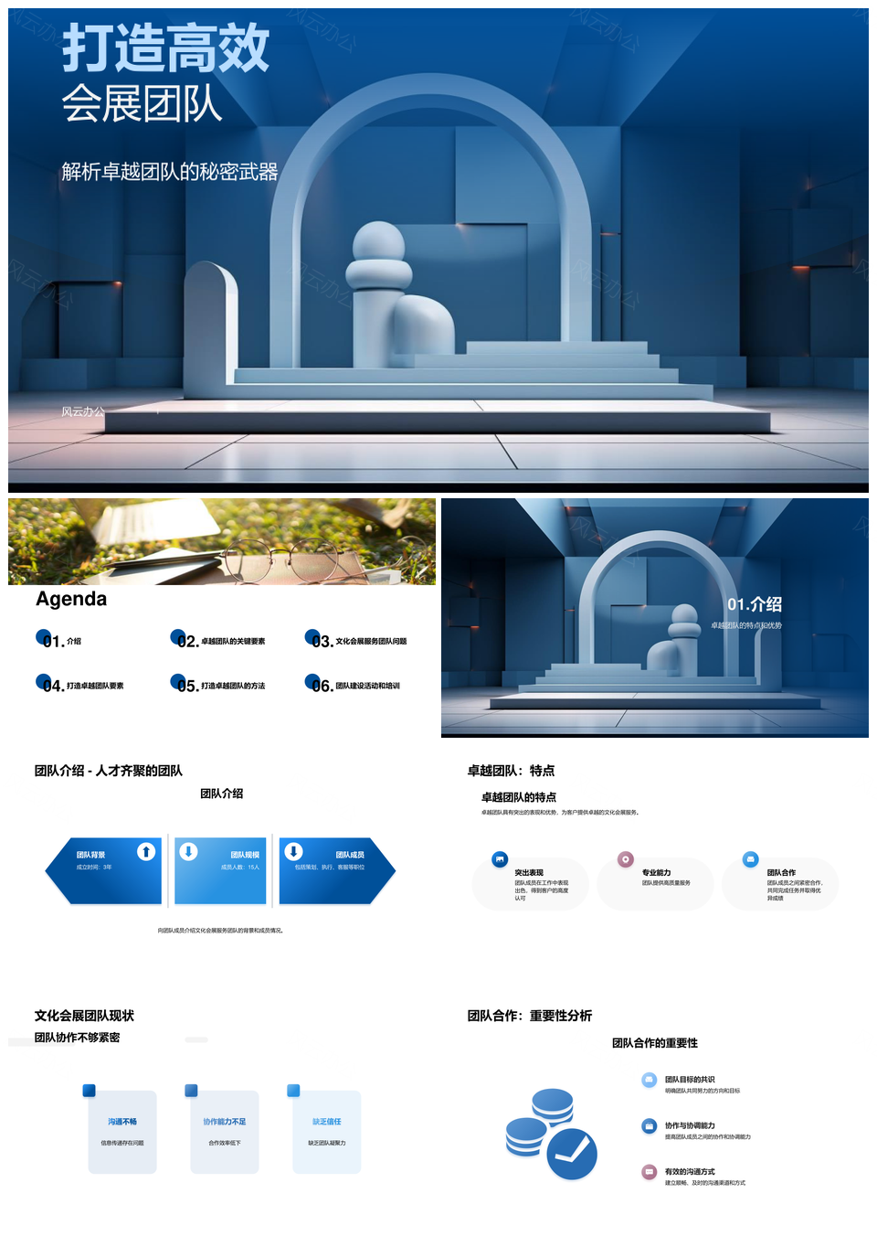 风云办公提供的高效会展团队协作专业能力奖励共建PPT模板,下载格式为pptx,一共32页,作品中文字及图均可以修改和编辑,图片更改请在作品中右键图片并更换,文字修改请直接点击文字进行修改。